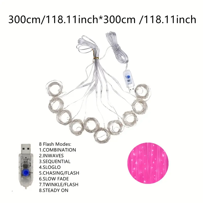 LED valguskardin, mis on valmistatud õhukestest juhtmetest ja mini LED dioodidest. LED dioodide arv: 300